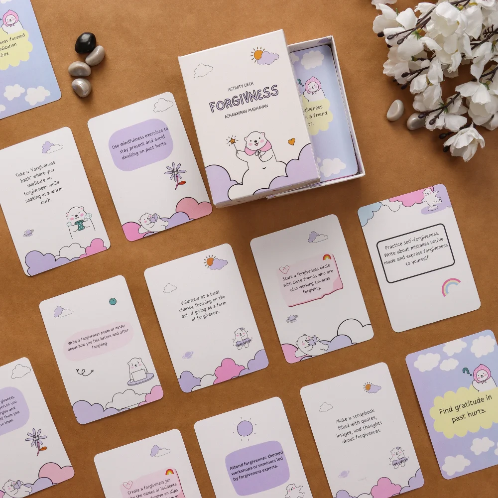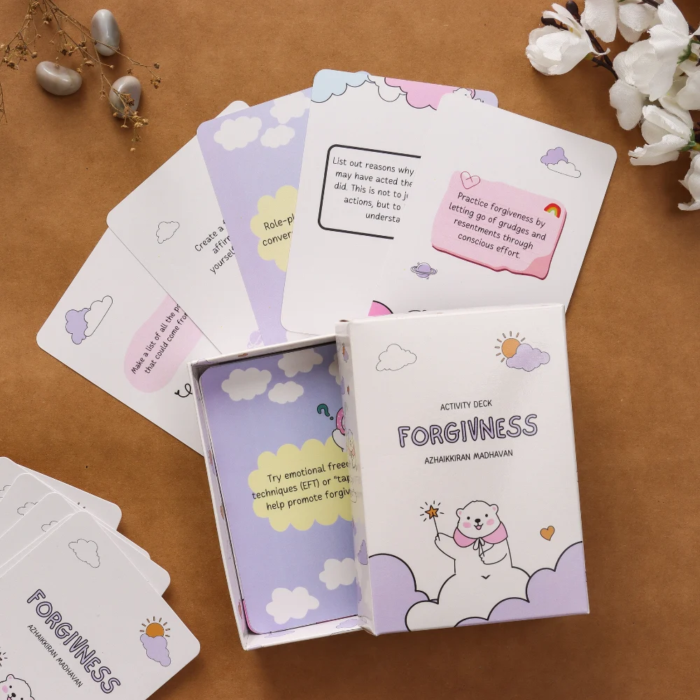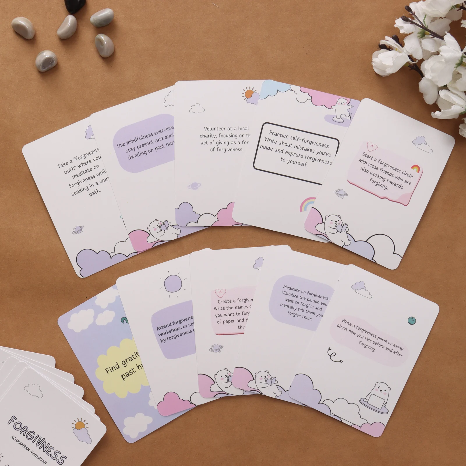 2. Diverse Range of Activities: Engage in a diverse range of forgiveness-promoting activities, from personal reflections to actionable steps towards forgiveness. Whether it’s writing a forgiveness letter, practicing self-compassion, or letting go of resentments, these cards offer a multitude of pathways to cultivate forgiveness in your life.