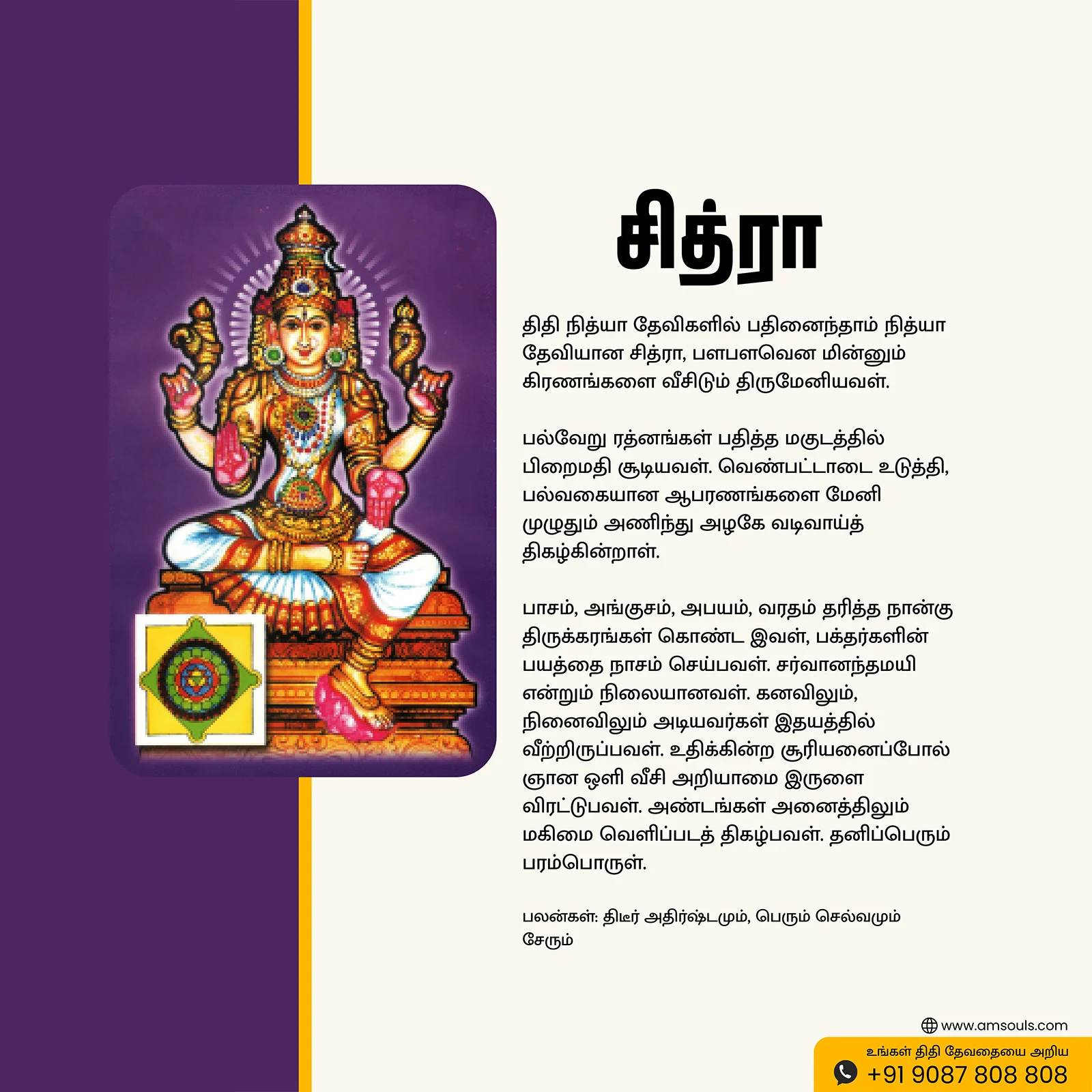 Sri Chitra | Thithi Devathai | Energized Powerful Photo Frame | 6×8 inch